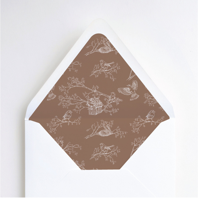 These bird-themed wedding invitations are a perfect way to spread the word about your big day. Our Nesting Birds Wedding Invitation Cards are a bird lover’s dream with vintage-styled avian artwork featured on one side. On the other side, all of the Big Day details are given alongside a gentle feathered-friend. You can easily personalize your Nesting Birds Wedding Invitation Cards to fit your style. We offer a wide selection of customizable options like fonts and colors, and we even have free designer assistance to help polish things up. Every order placed allows us the opportunity to plant one more tree to help our planet. We only use recycled paper for all of our high-quality wedding invitations.