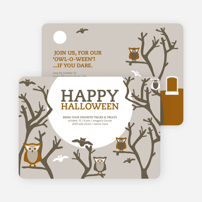 Owl and Graveyard Halloween Party Invitations